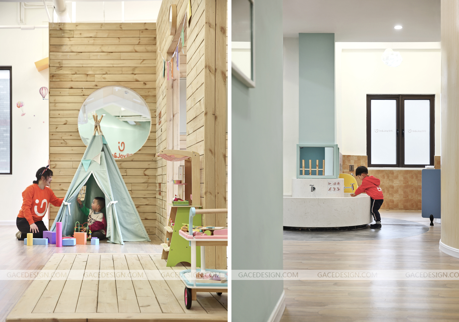 因樂國際兒童成長中心(In&Joy International Children Center)隸屬于因樂教育咨詢有限公司,是一家國際早托教育品牌。因樂的教育理念源自于瑞吉?dú)W教育法和歐美先進(jìn)的早期教育體系,為1.5歲至4歲的孩子們提供安全、開放、舒適的空間和國際先進(jìn)的教育課程,幫助孩子開發(fā)最大潛能,啟發(fā)學(xué)習(xí)興趣,讓孩子智商情商雙重成長,進(jìn)而適應(yīng)這個快速變化的世界。設(shè)計將國際前沿的瑞吉?dú)W課程及啟蒙理念引入「In&Joy因樂」早托兒童成長中心,希望孩子們在成長空間中釋放天性、對話自然。對自然的探索是生命最初的本能,因此早托中心的設(shè)計核心在「園」,設(shè)計師嘗試用新中式理念為渙散的空間重新定義主語。
