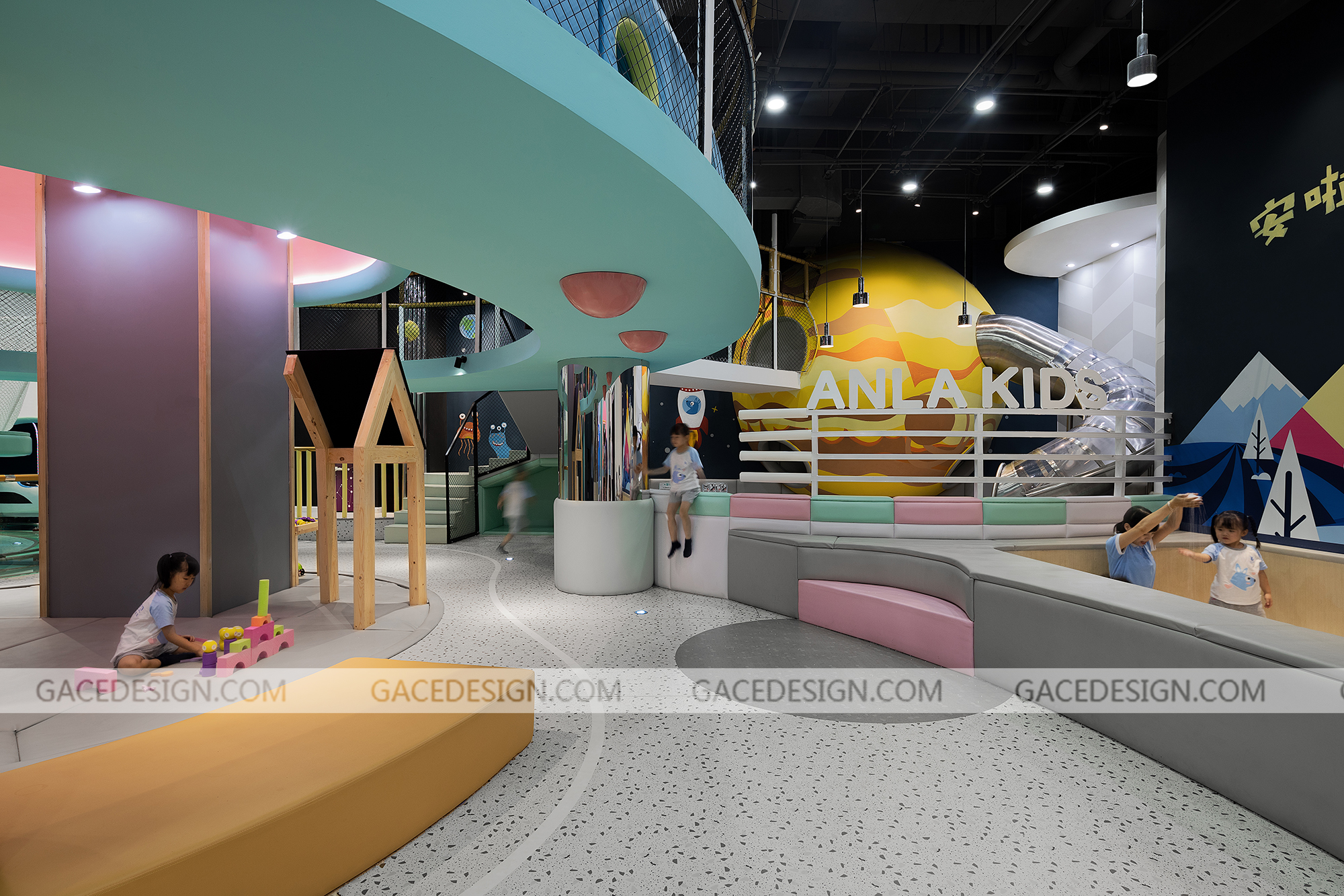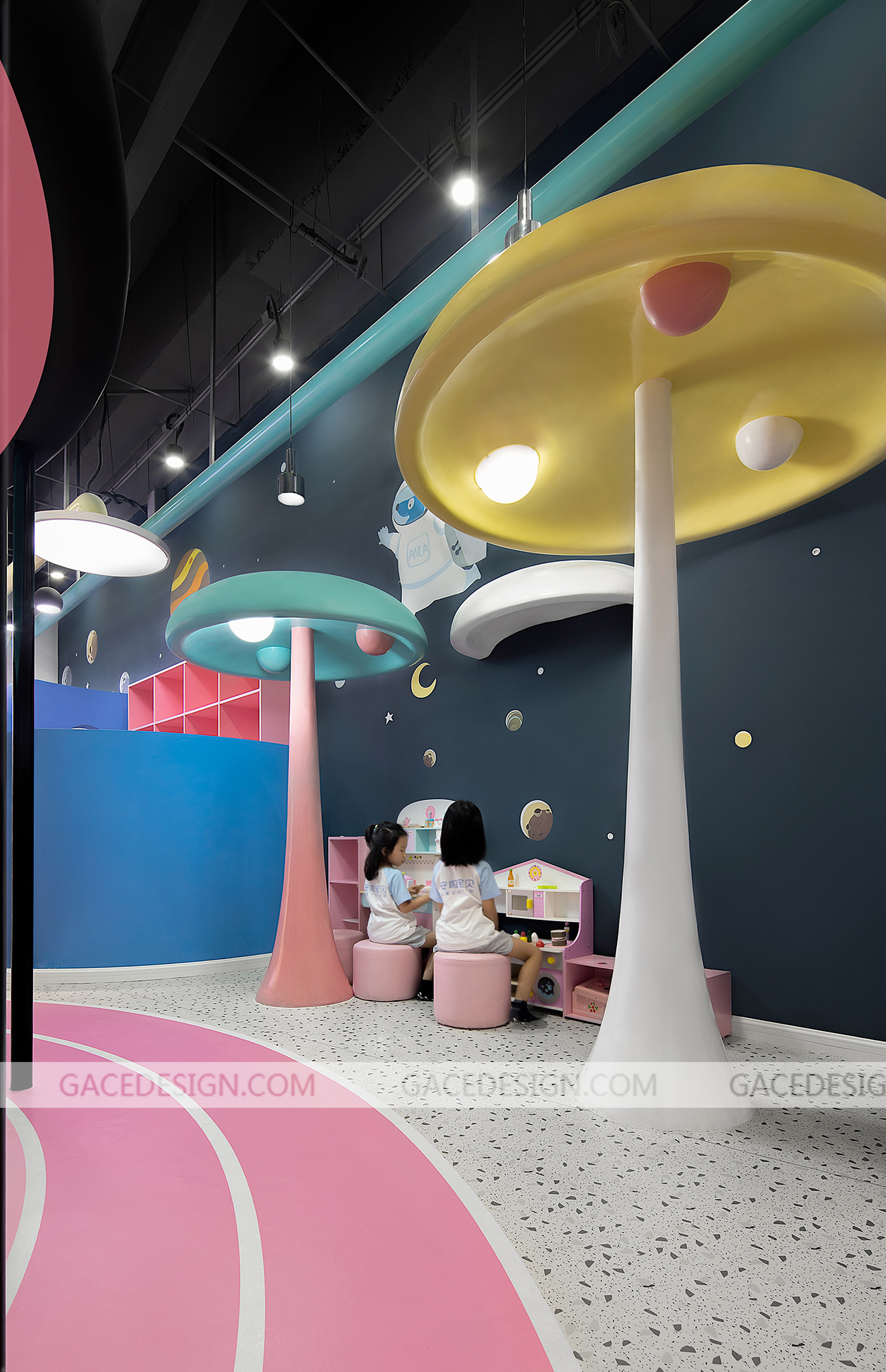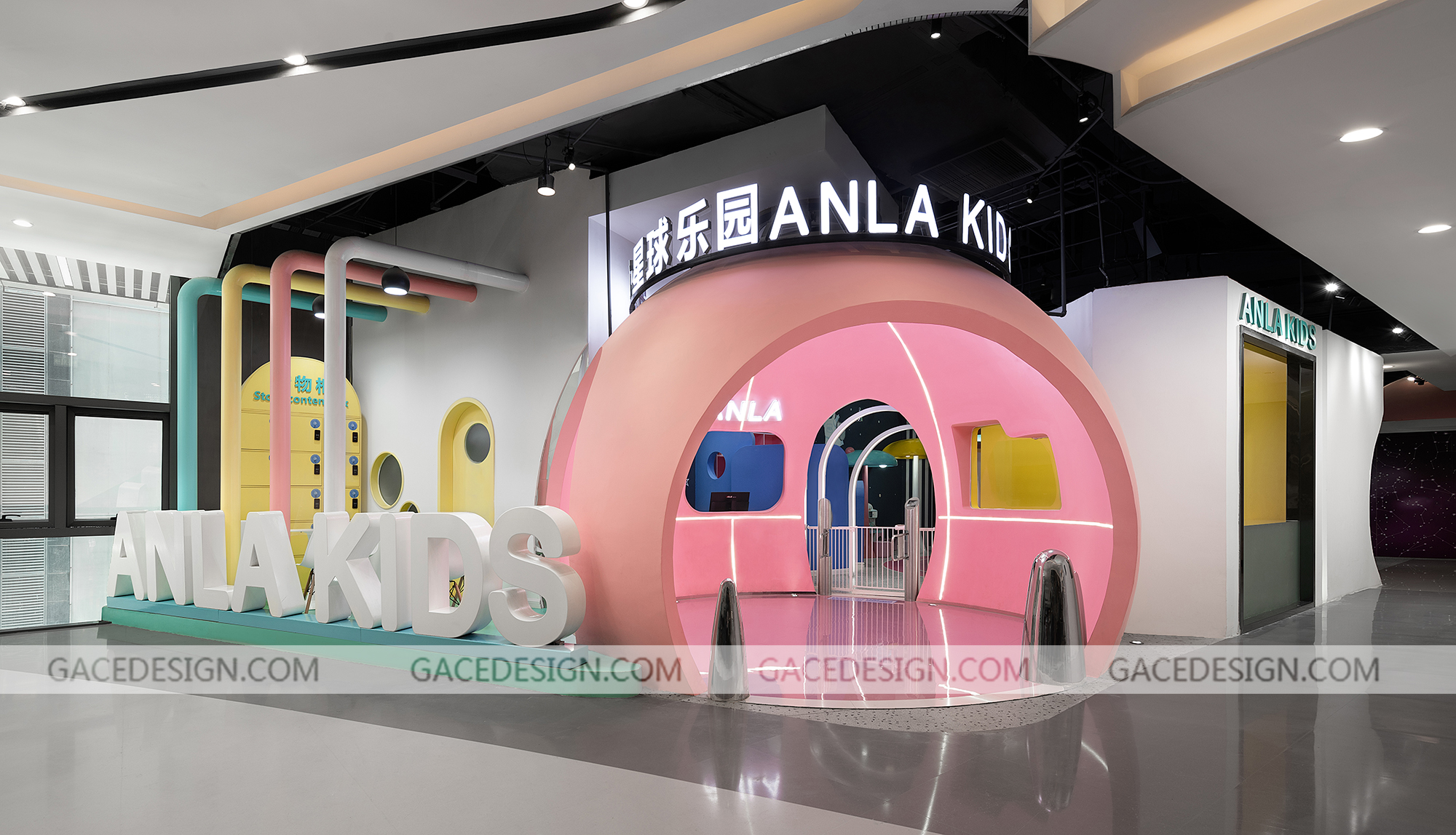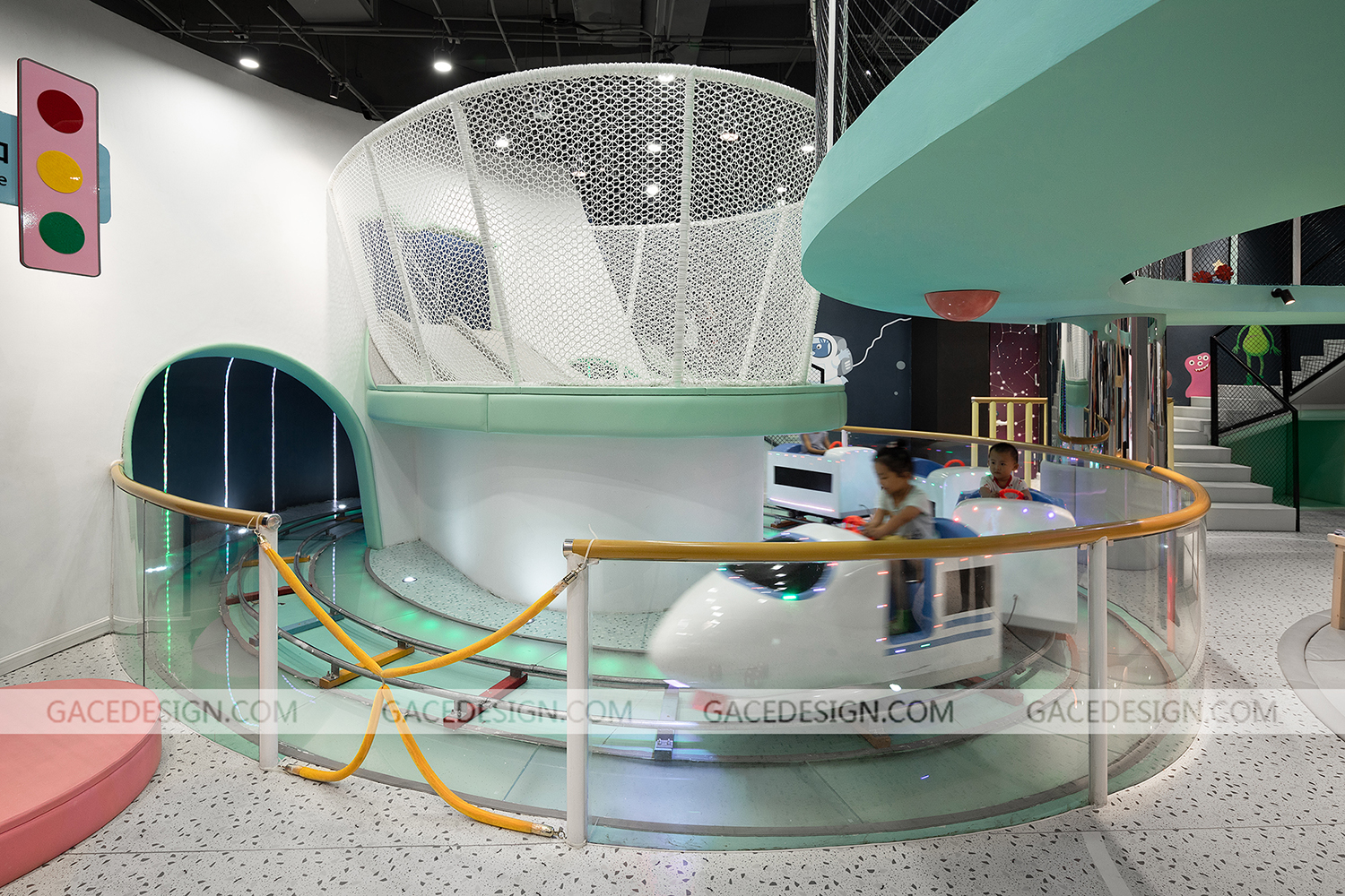 設(shè)計(jì)師將游樂(lè)場(chǎng)主題定為“未來(lái)星球”,以“未來(lái)”作為設(shè)計(jì)方向,以“星球”做為設(shè)計(jì)的核心。各種體量的“星球”在太空中穿行,打造出豐富多彩的星球世界。設(shè)計(jì)師根據(jù)孩子的冒險(xiǎn)精神設(shè)定多種游戲玩法和路線,孩子進(jìn)入游樂(lè)場(chǎng)后,首先需要了解故事背景,在置身其中不斷迎接挑戰(zhàn),最終完成“拯救家園”的任務(wù)。整個(gè)游樂(lè)場(chǎng)分為前端接待區(qū)、中端靜態(tài)游戲區(qū)、后端動(dòng)態(tài)游戲區(qū)。