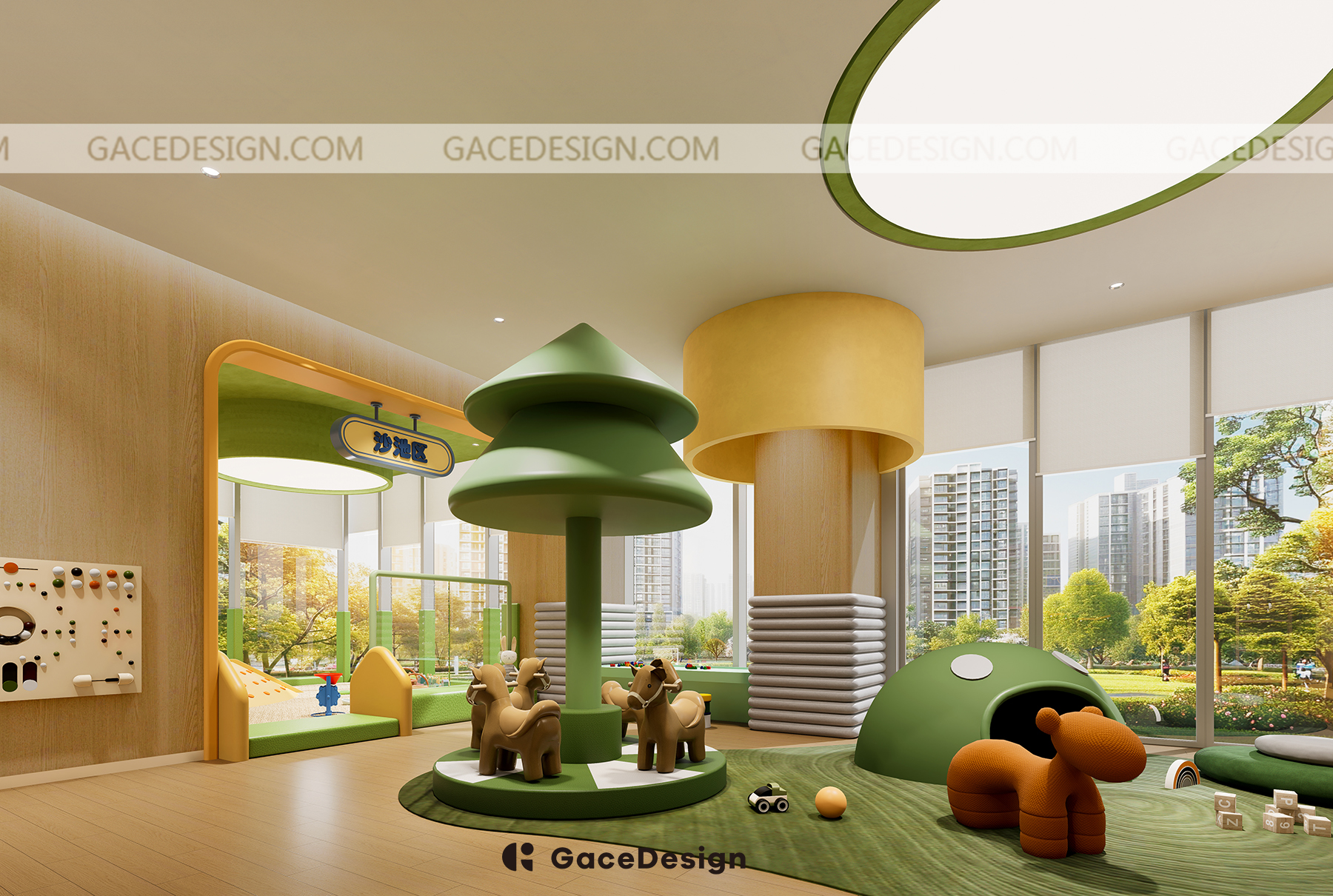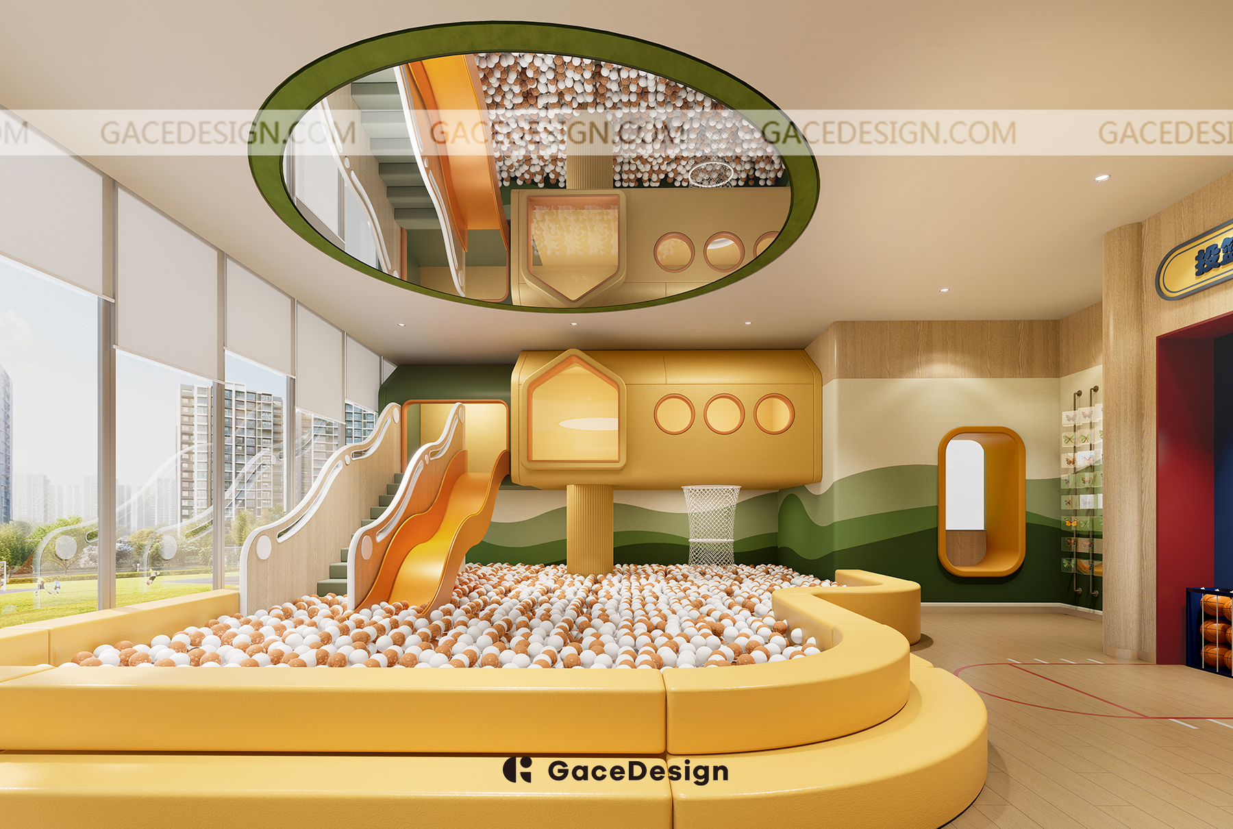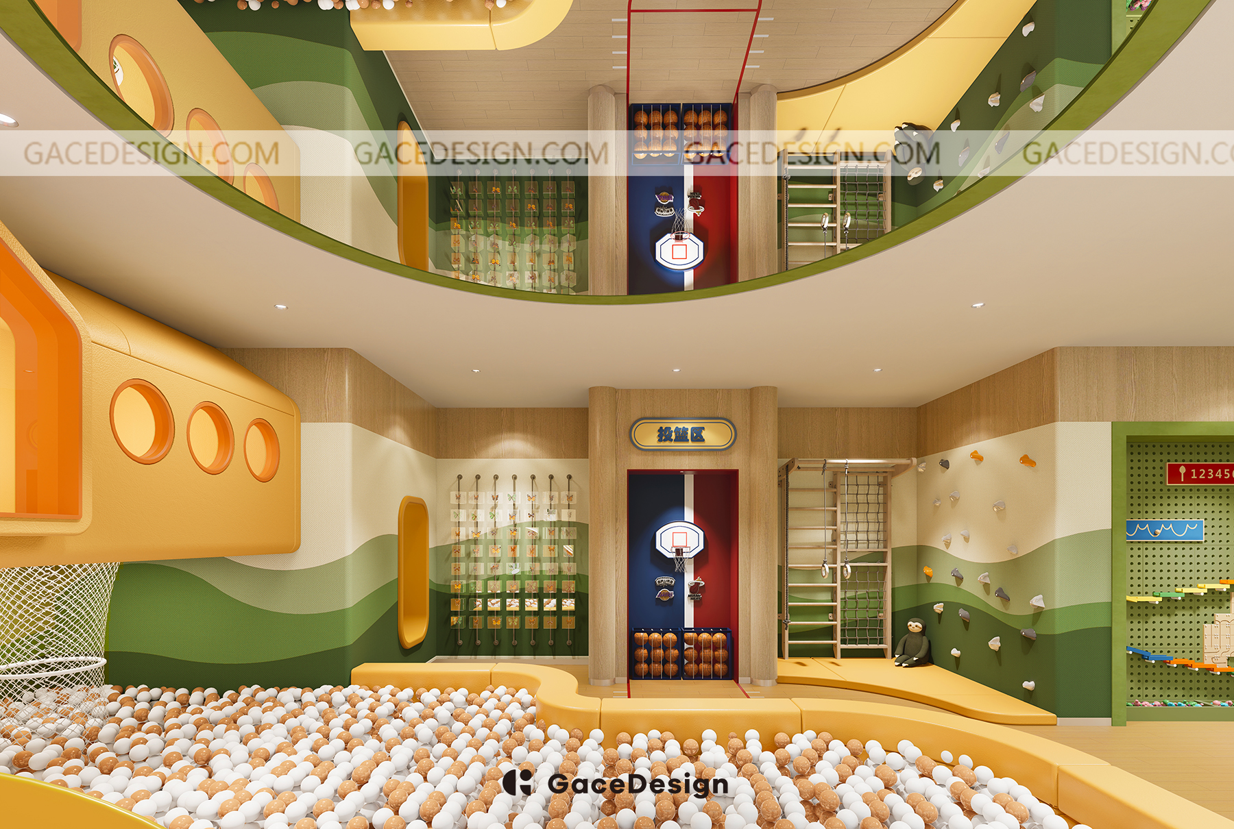 ?動(dòng)態(tài)區(qū)域則充滿了各種充滿樂(lè)趣的設(shè)施,特別是為低齡兒童設(shè)計(jì)了幼童區(qū)。我們還設(shè)置了滑梯、球池和沙池區(qū),孩子們可以在不同的區(qū)域里進(jìn)行角色互動(dòng),釋放他們的精力。對(duì)于稍大一點(diǎn)的孩子,還有攀爬墻和籃球供他們挑戰(zhàn)身體協(xié)調(diào)性和體能