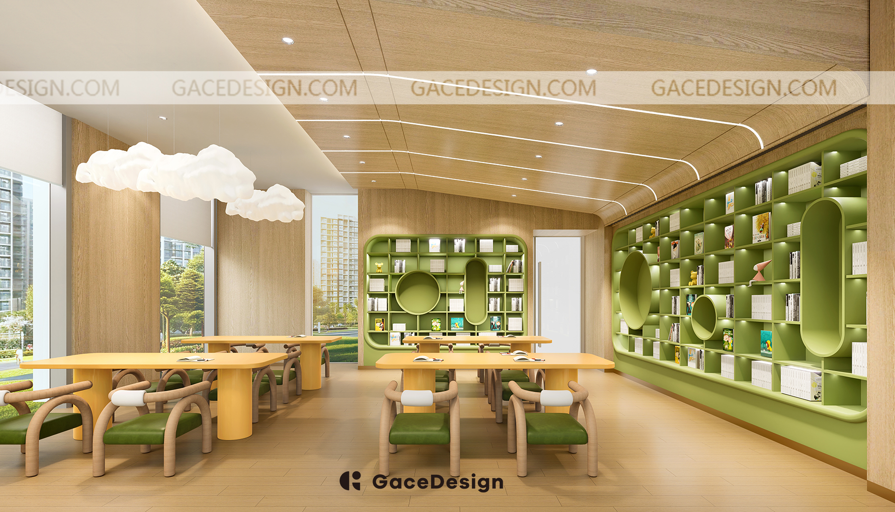 ?靜態(tài)區(qū)域被設(shè)計(jì)成了一個(gè)小的圖書館(四點(diǎn)半課堂),這里是孩子們可以安靜學(xué)習(xí)和閱讀的地方。此外,還有樂(lè)高區(qū)和標(biāo)本展示區(qū),有幫助孩子們通過(guò)互動(dòng)與觀察激發(fā)創(chuàng)造力和好奇心。