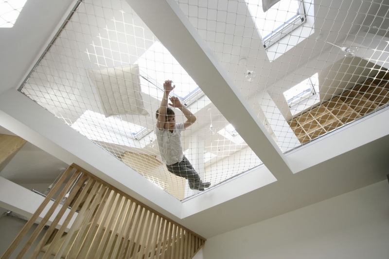 設(shè)計(jì)師把房子當(dāng)成一座大玩具去設(shè)計(jì),在設(shè)計(jì)的房子中織網(wǎng)交替,里面不僅有能跳可睡覺的各種網(wǎng),還有可以攀爬......