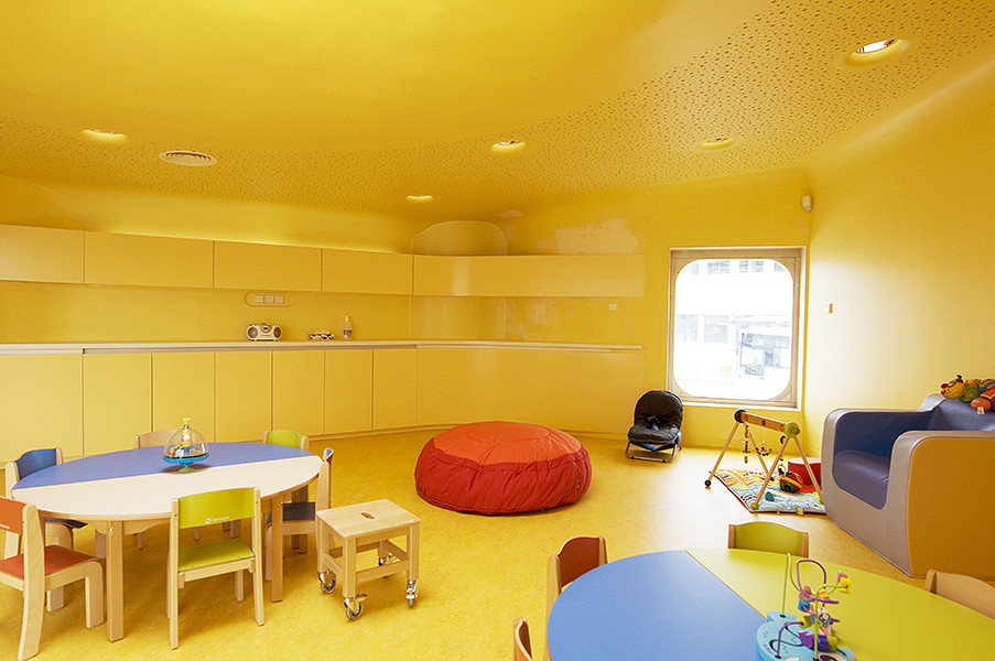 這個日托機(jī)構(gòu)主要面對嬰兒而非兒童,所以要研究家長與工作人員的行為和情感,在建筑設(shè)計中綜合考慮嬰兒被保護(hù)、被關(guān)懷的需要。