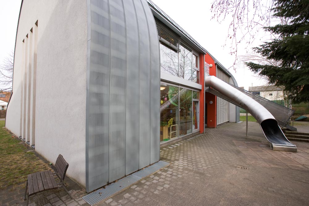 貓形幼兒園。位于德國(guó)Wolfartsweier,由知名藝術(shù)家Tomi Ungerer設(shè)計(jì)。其靈感來(lái)源于他最喜愛的動(dòng)物——貓。貓嘴是門,肚子是更衣室、教室、廚房與餐廳,頭部是娛樂場(chǎng),尾巴是緊急逃生通道,頭頂上還有草坪以模仿貓的皮毛。貓爪子要是滑梯就更有趣了。