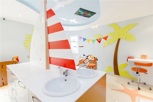 而國(guó)外的牙科設(shè)計(jì),從空間設(shè)計(jì)上來(lái)說(shuō),里面加進(jìn)了很多的兒童玩樂(lè)元素,色彩豐富活躍。孩子進(jìn)入其中的時(shí)候,仿佛置身一個(gè)樂(lè)園。從心理上,不會(huì)產(chǎn)生抵觸感。加之國(guó)外牙科醫(yī)生在給孩子拔牙前,會(huì)鼓勵(lì)孩子勇敢,把蛀牙比作惡魔,要消滅惡魔。甚至為孩子講個(gè)有趣的拔牙故事。最后孩子開(kāi)開(kāi)心心拔完牙,不哭不鬧。