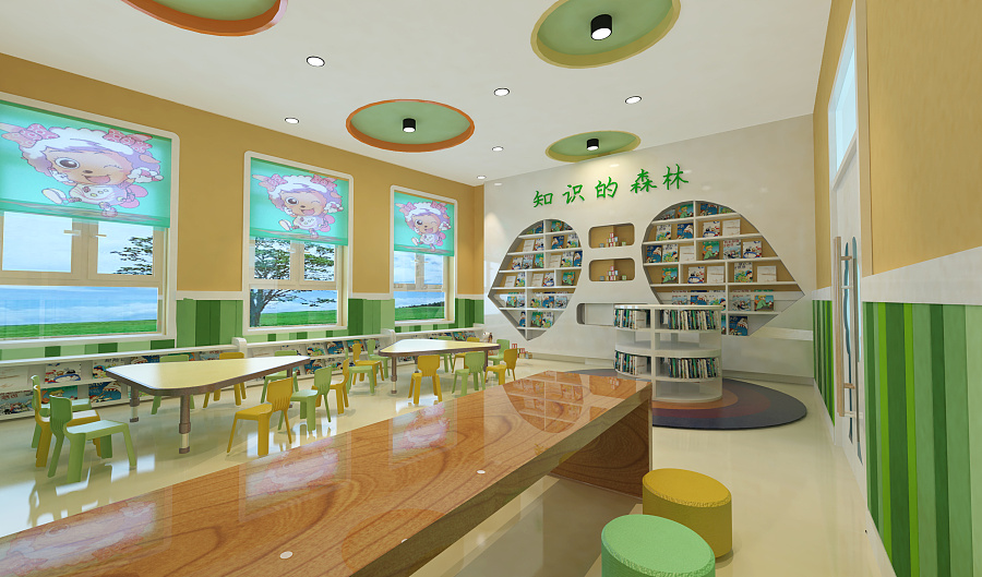 光滑干凈的長(zhǎng)桌設(shè)計(jì)讓孩子們可以在鋪滿陽(yáng)光的桌子上書(shū)寫(xiě)畫(huà)畫(huà)的,明亮溫馨的環(huán)境孩子們也會(huì)更有學(xué)習(xí)的氛圍,孩子們圍著長(zhǎng)桌一起讀書(shū)的畫(huà)面,想起來(lái)也是醉了,每個(gè)小細(xì)節(jié)的設(shè)計(jì),卡通圖畫(huà)、簡(jiǎn)約大方的書(shū)架....每個(gè)角度都是一副唯美的畫(huà)面。