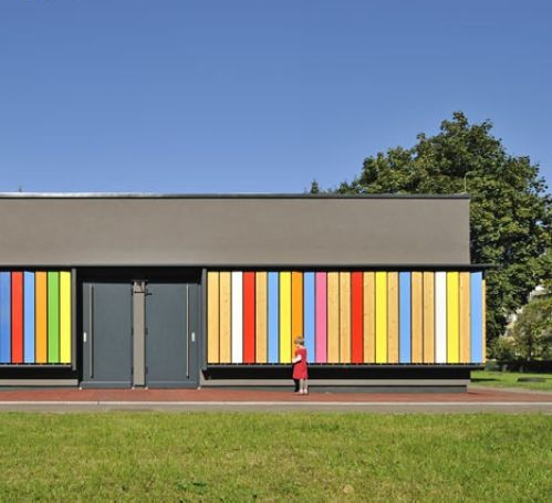 這棟會(huì)變色的建筑時(shí)而顏色鮮艷,時(shí)而相貌平平,其中奧秘在于一面木制外墻。
