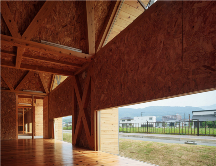 屋頂結(jié)構(gòu)采用折疊板設(shè)計(jì),無柱空間是通過運(yùn)用木桁架梁屋頂結(jié)構(gòu)實(shí)現(xiàn)的,形狀像一塊折疊板。所有支撐屋頂結(jié)構(gòu)的承重墻都被布置在建筑外圍?,F(xiàn)在這座建筑分成了兩個保育室、衛(wèi)生間等,但將來也可以轉(zhuǎn)換為一個大房間。