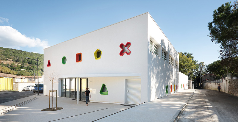 這個(gè)育兒中心是以之前的一個(gè)農(nóng)業(yè)部門改建而來,位于兩條狹窄的街道的街角之處,值得一提的是育兒中心與l’Ecureuil療養(yǎng)院建在一起:兩個(gè)建筑之間有一個(gè)漂亮的花園里面有很多栗子樹,增加了它們之間的聯(lián)系和代際關(guān)系。(幼兒園設(shè)計(jì))