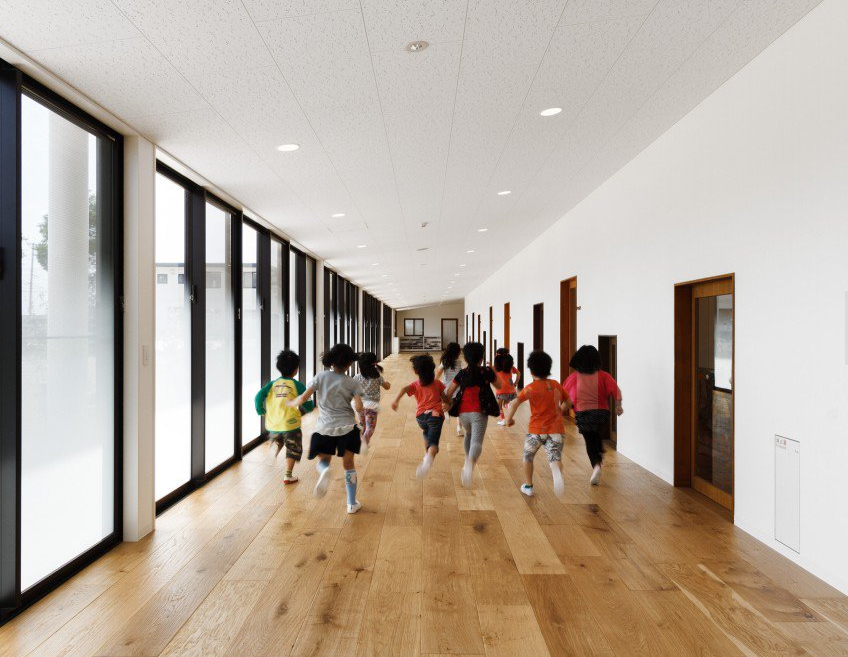 這樣,它就成為所有年級(jí)的孩子們自由玩耍的空間。另外,孩子們?cè)诖笮秃托⌒偷拈T廊進(jìn)出會(huì)很有趣,而且老師能看到孩子們?cè)谕饷骈_心的玩耍,同時(shí)反復(fù)的進(jìn)進(jìn)出出也有助于鍛煉和減少壓力。