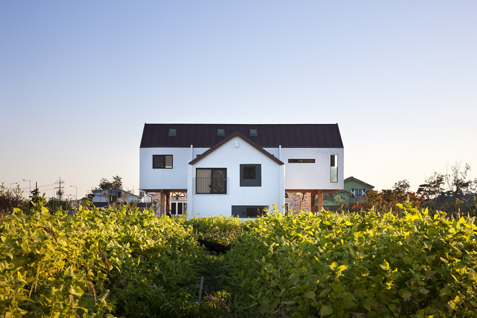 在韓國(guó)的益山州市有一棟英文字母“T”型的房子,這棟房子是采用30里面后的膠合木建筑的全木質(zhì)住宅,在T字的兩個(gè)端頭被挑起,分別的形成了入口門(mén)廊和客廳的花園休閑平臺(tái),一層為開(kāi)放的大空間,包含了起居室,廚房和餐廳,第二場(chǎng)則是私人空間,設(shè)有書(shū)房,游戲廳和臥室等房間。