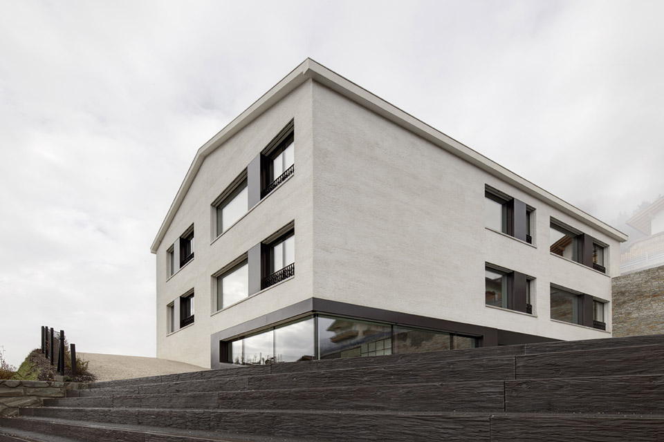 就像這些山區(qū)的民居建筑一樣,他們也把自己的體重靠在山坡上.。這兩個(gè)主體結(jié)構(gòu)的位置是由多功能廳連接的,它也為公眾服務(wù).。學(xué)校周?chē)目犊_(kāi)放的空間,作為兒童游樂(lè)場(chǎng)和運(yùn)動(dòng)區(qū)。此外,這些空間成為一個(gè)露天舞臺(tái),通過(guò)額外的元素,最受青睞的性格一般可用的會(huì)議afers鎮(zhèn)的地方。顏色和材料的概念正在執(zhí)行減少的外觀(guān),關(guān)于建筑物的大小和體積。它強(qiáng)調(diào)和諧融入村莊周?chē)0咨鬯⑼鈮?,其結(jié)構(gòu)一直保持粗糙,給直接對(duì)比黑暗的電化鋁窗框。