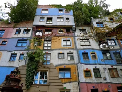 由藝術家改行為建筑師的佛登斯列·漢德瓦薩在好友的幫助下設計建造了百水公寓。百水公寓建于1983至1985年間,包含了一棟一層樓和一棟兩層樓的公寓。百水公寓包含了很多自然元素,樹木會在房間內(nèi)生長,樹木的枝干在船外延伸。不過這樣設計,經(jīng)過歲月的沉淀,想必會被植被慢慢吞噬。