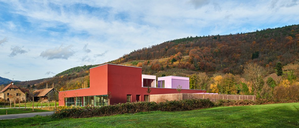 位于法國阿爾薩斯省一個小村莊的山谷入口處,建造著一所就像是用積木搭建兒童的樂園,環(huán)繞著幼兒園的蘋果樹和邊上連綿起伏的山丘隨著四季的變化成了幼兒園一道特別的背景,沿著幼兒園的邊界還有一條圍墻,墻上有著大小不一的圓孔,可以透過這些圓孔去看到外面的世界,這個很有趣的設(shè)計可以提供一些有趣的感覺,滿足了孩子們的好奇心,而這面有趣的圍墻則如同衛(wèi)士一樣默默守護者在自由玩耍的可愛孩子們。