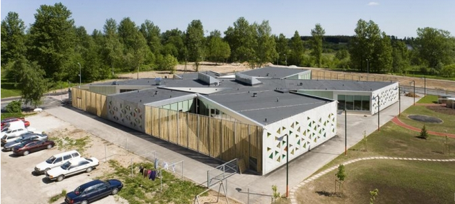 位于塔爾圖愛(ài)沙尼亞樂(lè)天幼兒園,幼兒園布局成六角形這是一個(gè)有著六片就像是翅膀一般的花瓣的花朵,幼兒園在一個(gè)非常有趣的地方就在所謂的唐人街也是前蘇聯(lián)軍事要塞的地點(diǎn),這所樂(lè)天幼兒園就建筑在軍用的公寓樓旁邊。