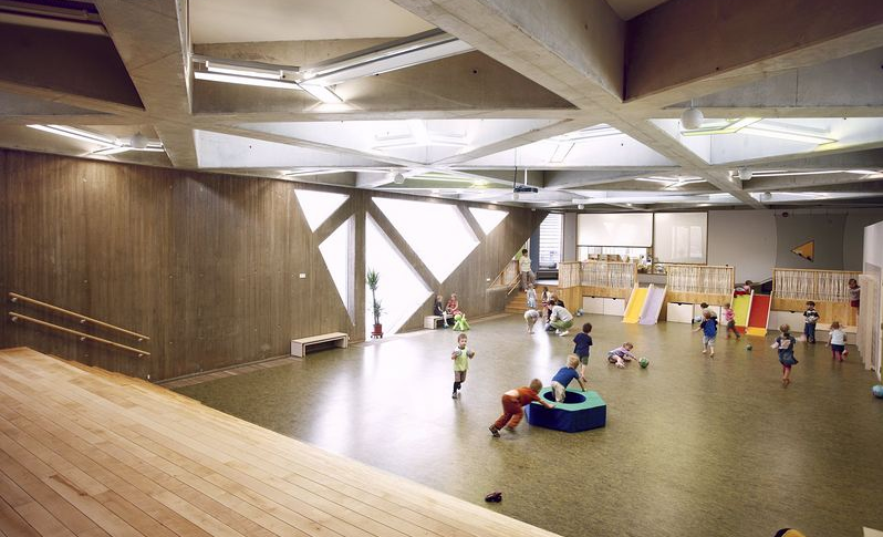 在幼兒園的周邊除了茂盛的綠植沒(méi)有什么特別漂亮的景色,但是幼兒園本身就是一個(gè)非常有內(nèi)在特色的景觀,這所樂(lè)天幼兒園有著屋頂會(huì)發(fā)光的神奇大廳,一路上都有著連綿不斷山丘、河流和峽谷的娛樂(lè)通道,還有一個(gè)把娛樂(lè)通道環(huán)繞起來(lái)的幼兒園中心作為孩子們的游戲區(qū)。