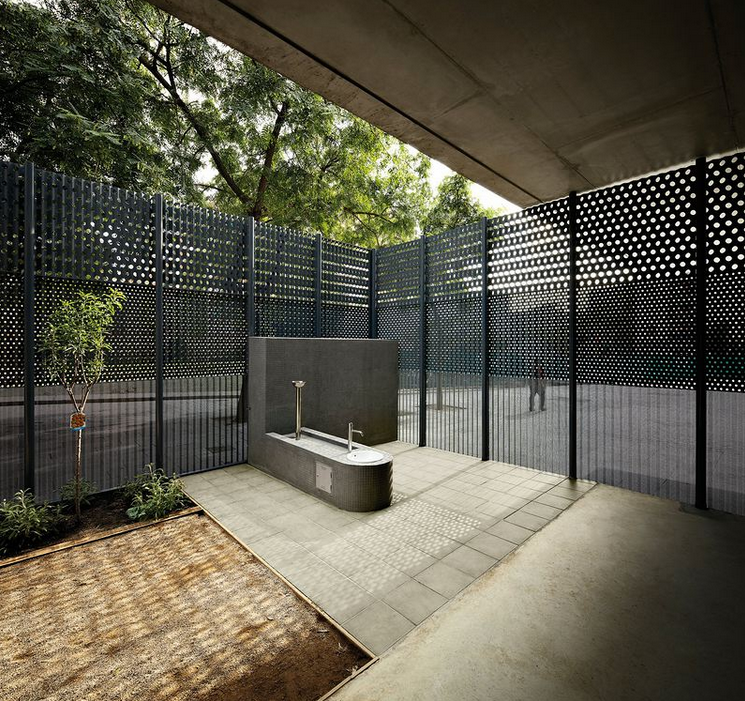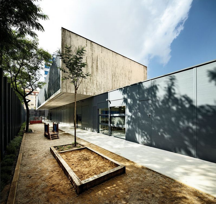 位于西班牙的巴薩羅納馬拉加幼兒園,重新設(shè)計的馬拉加庭院,坐落于巴薩羅那的街道內(nèi)部,與尼加拉瓜、柏林、紐馬以及埃涅伊德街道相鄰。它已升級成一小座教學(xué)樓:幼兒園。矩形的場所連接著分隔墻的其中一個封閉建筑體,另一面面對著庭院。