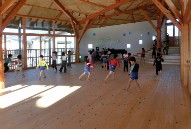 位于日本的美濃市在2012年建成一所木質(zhì)托兒所建筑,這個(gè)幼兒園采用了Mokuiku的結(jié)構(gòu)體系,反應(yīng)了教育環(huán)境的一種手段同時(shí)也是反應(yīng)了一個(gè)回收利用的社會(huì)觀念。美濃市托兒所的設(shè)計(jì),反映了“本地生產(chǎn)、本地消費(fèi)”的創(chuàng)新設(shè)計(jì)理念,在文化和環(huán)境上實(shí)現(xiàn)了可持續(xù)發(fā)展。