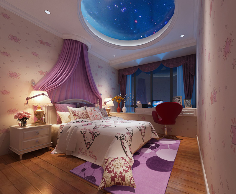 第二公主風(fēng):每個女孩子都有著一個公主夢,一個大大的窗口,室內(nèi)有著一張柔軟舒適的大床,在小的時候可以在室內(nèi)放置一些卡通風(fēng)格的公仔長大之后可以換成簡約大氣的風(fēng)格,而室內(nèi)以粉色裝飾四周加上天花板上裝飾這一個“星空”對任何一個女孩子來說都有著一種致命的吸引力。(幼兒園設(shè)計)