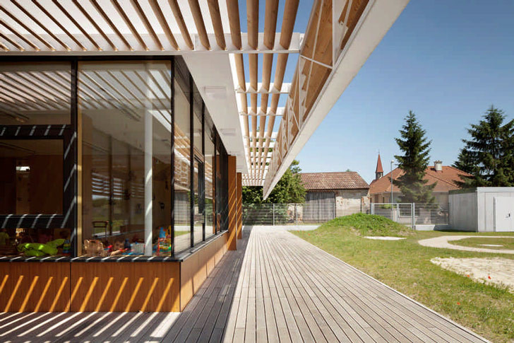 紐費(fèi)爾德河畔利莎幼兒園位于奧地利布耳根蘭州,建筑面積達(dá)到了1240㎡使用面積為830㎡是09年建筑比賽的一等獎(jiǎng)在2010年秋季建筑完成。