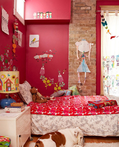 采用各種顏色的剪紙作為主題,以陳舊磚墻作為點綴,可以選擇玫瑰紅色的兒童房,這個風格給人的印象就是熱情奔放,而以陳舊的磚墻則是可以中和色調,能有效的保證孩子不會因為視覺上讓孩子的心情太過浮躁,而且在墻體上還可以貼一些可愛的墻貼,整個房間都從滿孩子喜好的元素,再配以艷麗的顏色會給予孩子很多的想象空間。(幼兒園設計)