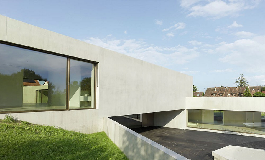 朝向不同方向的大型采光窗更加強(qiáng)調(diào)了建筑的自然品質(zhì),在建筑選址中,建筑師更多的考慮了視覺(jué)關(guān)系。建筑在室內(nèi)外均采用了混凝土材料,使之與地形和周邊環(huán)境融為一體。