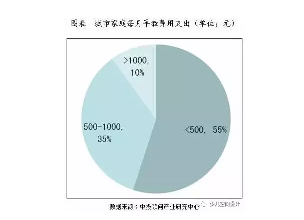 中國目前家庭教育消費(fèi)的年均增速為20%,育兒支出已占中國家庭平均收入的23%。教育支出在中國家庭已經(jīng)超過其他生活費(fèi)用,成為僅次于食物的第二大日常支出。56.5%的家長把孩子教育投資列在首位,35%的城市家庭每月在孩子身上的早期教育費(fèi)用支出在500-1000元,10%的家庭每月用于孩子的早期教育費(fèi)用支出高于1000元/月。龐大的早教需求,誘人的早教市場,致使早教行業(yè)應(yīng)運(yùn)而生,早教機(jī)構(gòu)風(fēng)生水起。