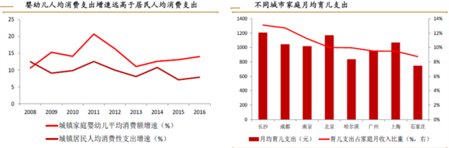從產(chǎn)業(yè)生命周期角度看,兒童產(chǎn)業(yè)更傾向于常青產(chǎn)業(yè),相當(dāng)于其他產(chǎn)業(yè)(成長(zhǎng)期-成熟期-衰退期)生命周期而言,常青產(chǎn)業(yè)的產(chǎn)業(yè)生命周期波動(dòng)較小,支撐其長(zhǎng)期處于成長(zhǎng)與成熟期的是家庭收入增加后,引致型消費(fèi)更愿意投在子女養(yǎng)育消費(fèi)上,兒童在服裝、食品、藥品、保健品等方面的消費(fèi)屬于剛性需求,為市場(chǎng)提供了持久動(dòng)力。這一特征決定了兒童產(chǎn)業(yè)不是速生速滅的“快閃”產(chǎn)業(yè),而是持續(xù)投資、長(zhǎng)期回報(bào)的產(chǎn)業(yè)。
