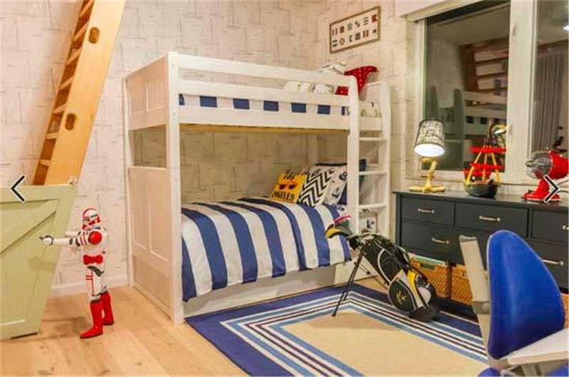 為了節(jié)省空間,大多麻麻會采用上下式。交錯式其實(shí)也是很不錯的選擇哦!空間感極強(qiáng),等他們長成大寶,還可以睡前隨時聊聊天~