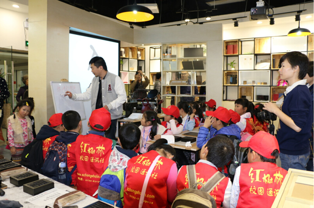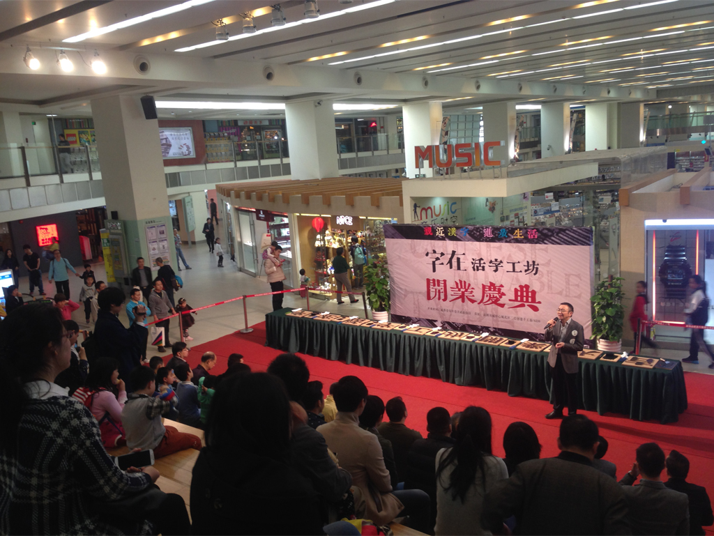 2015年1月25日,全新漢字體驗(yàn)?zāi)J降摹缸衷凇够钭止し辉谏钲谥行臅锹≈亻_業(yè)啦!公司設(shè)計(jì)總監(jiān)賀維先生、創(chuàng)意總監(jiān)朱行奇先生受邀參加了開業(yè)儀式?!缸衷凇箘?chuàng)始人劉美松先生在開業(yè)儀式上強(qiáng)調(diào):“活字有種集聚了五千年文明的力量,可惜現(xiàn)在我們對(duì)文字的感知只能停留在指尖輕輕劃落的那一瞬間,而活字工坊的存在可以讓這種觸摸變得樸實(shí)而有力量?!薄缸衷凇拐Υ蛟煲粋€(gè)集知識(shí)性、互動(dòng)性、創(chuàng)新性的漢字“校外課堂”。
